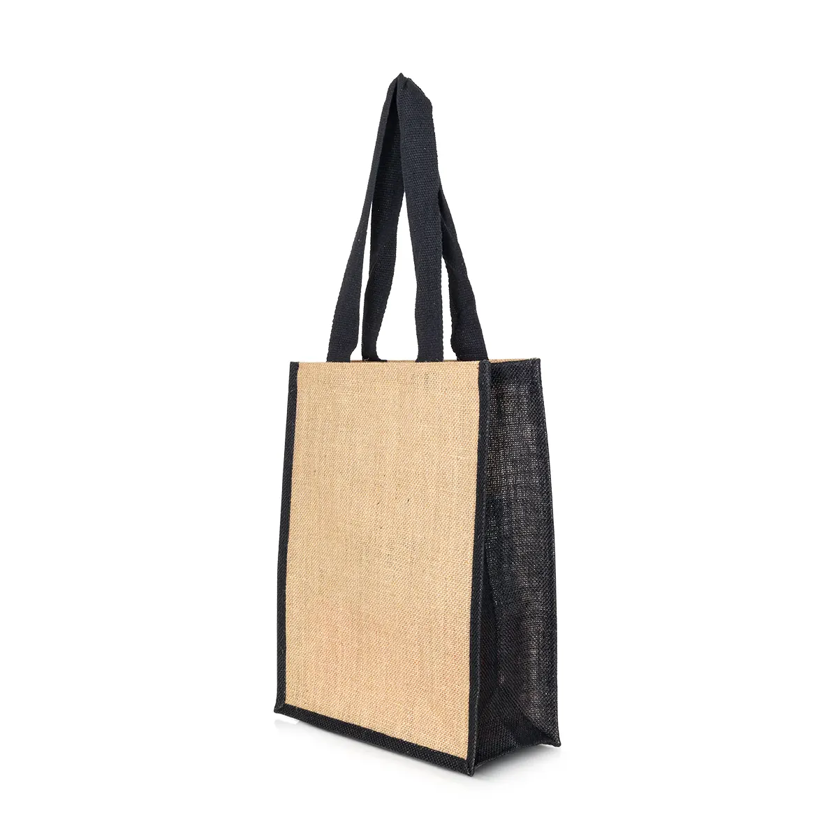Canvas & Jute Bags with Blue Border | Eco-Friendly Two-Tone Tote