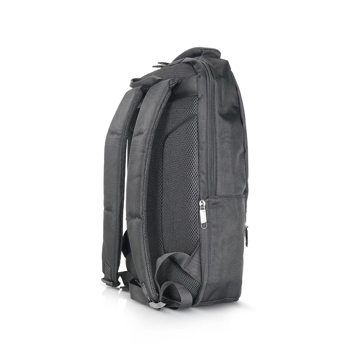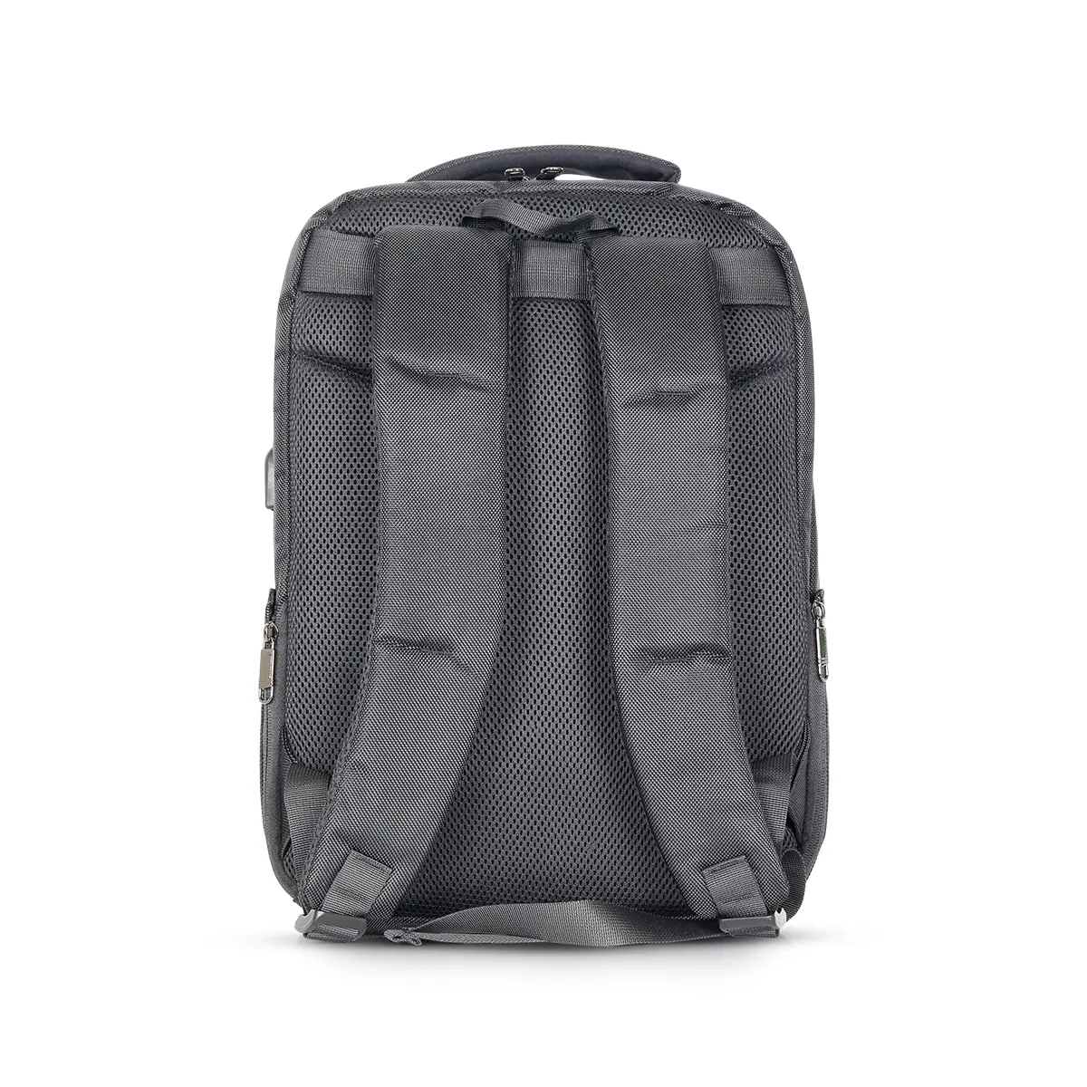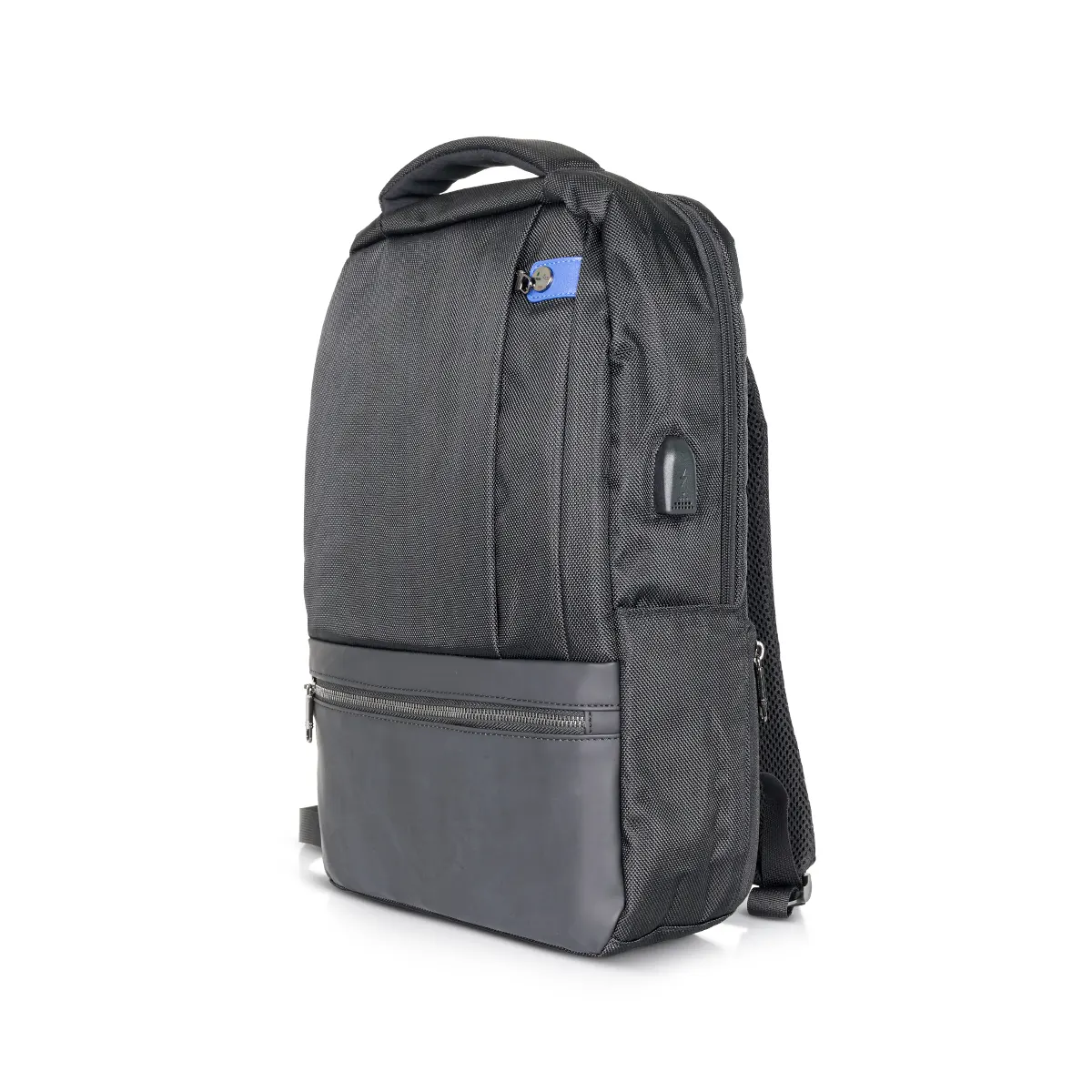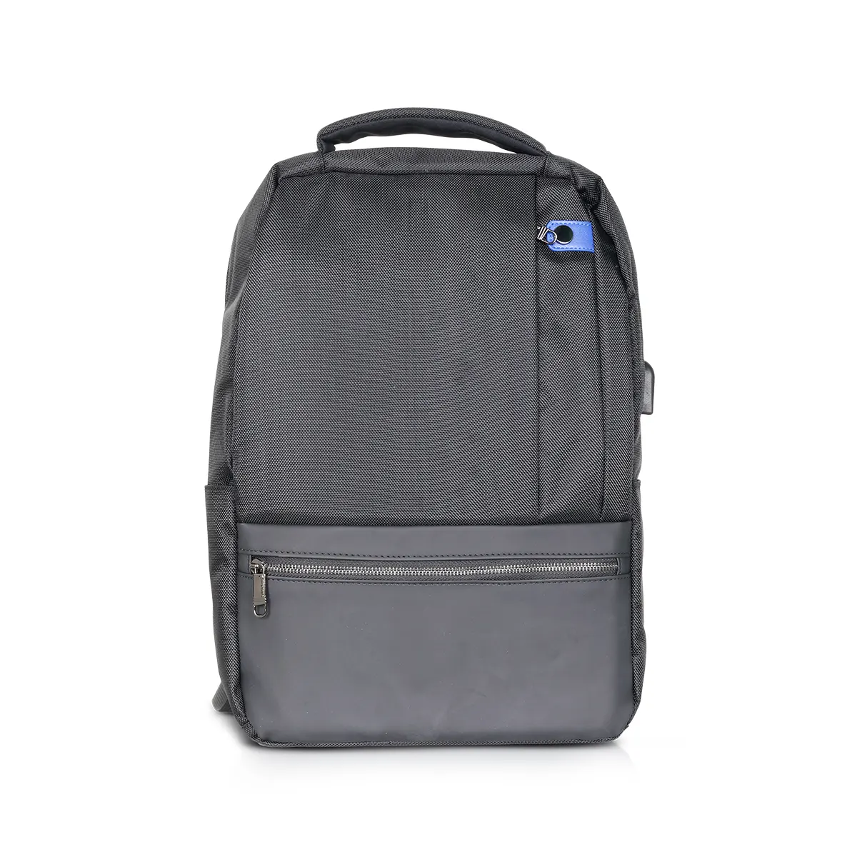 Its built-in external USB charging port allows users to stay powered up during commutes, travel, or business meetings, while the sleek black finish with subtle grey detailing enhances its professional appeal.