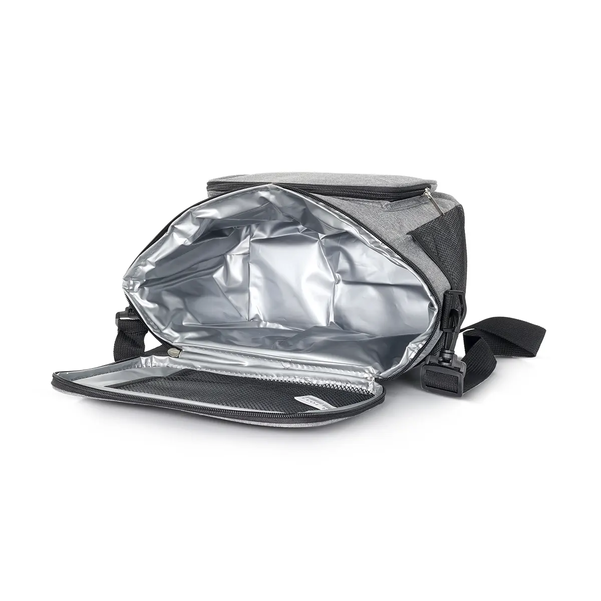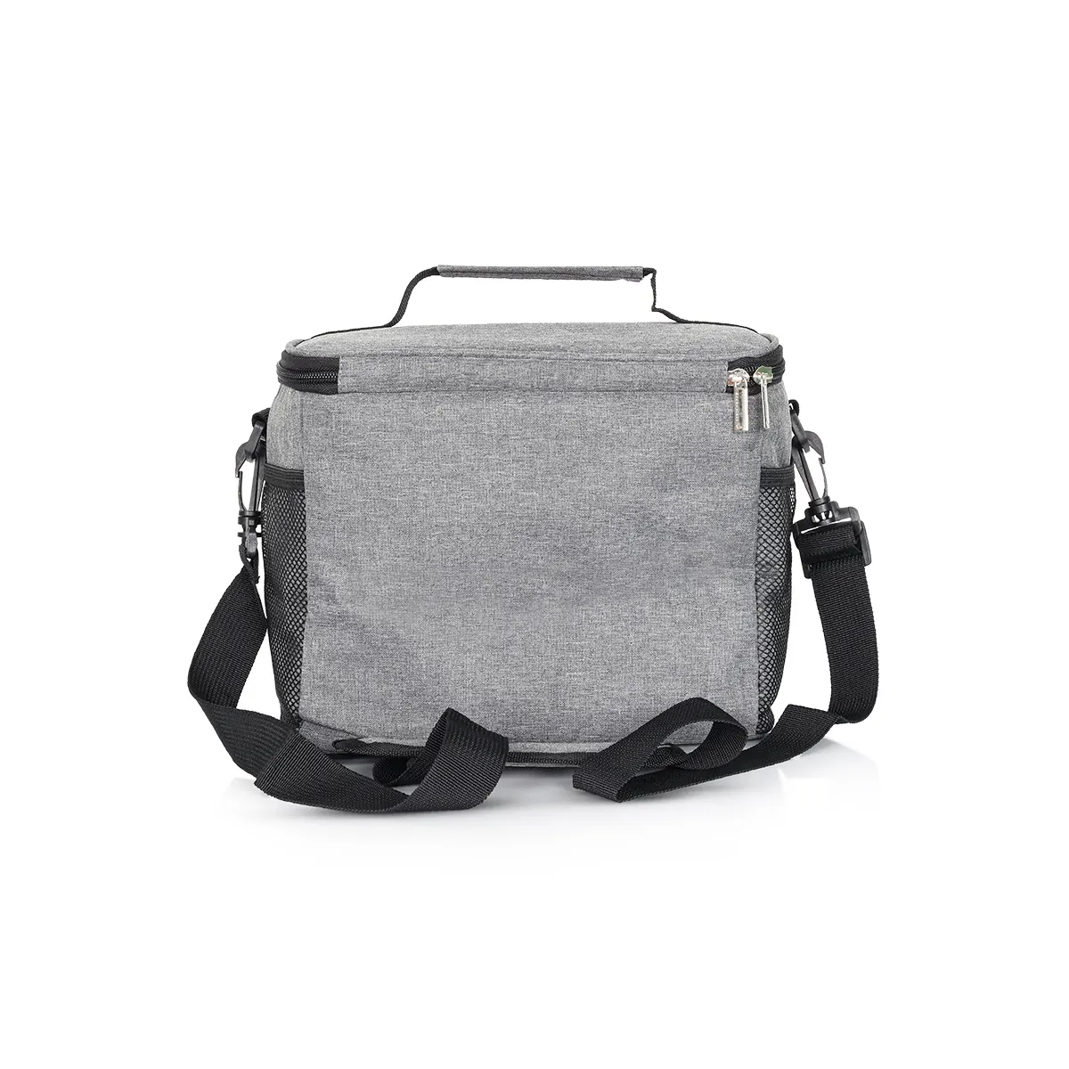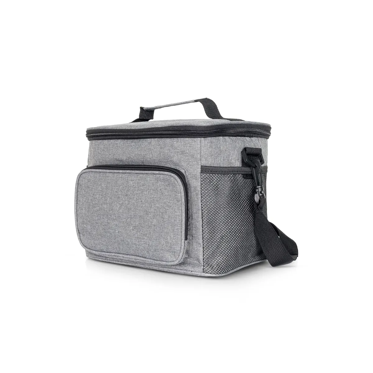 Carry your meals in comfort and style with our grey rectangular insulated lunch bag, designed for durability and everyday convenience. Made from high-quality polyester, it features a large insulated compartment to keep food fresh, a front zipper pocket, and side mesh pockets for bottles or snacks. The adjustable padded shoulder strap ensures easy portability, making it perfect for school, office, or travel.
