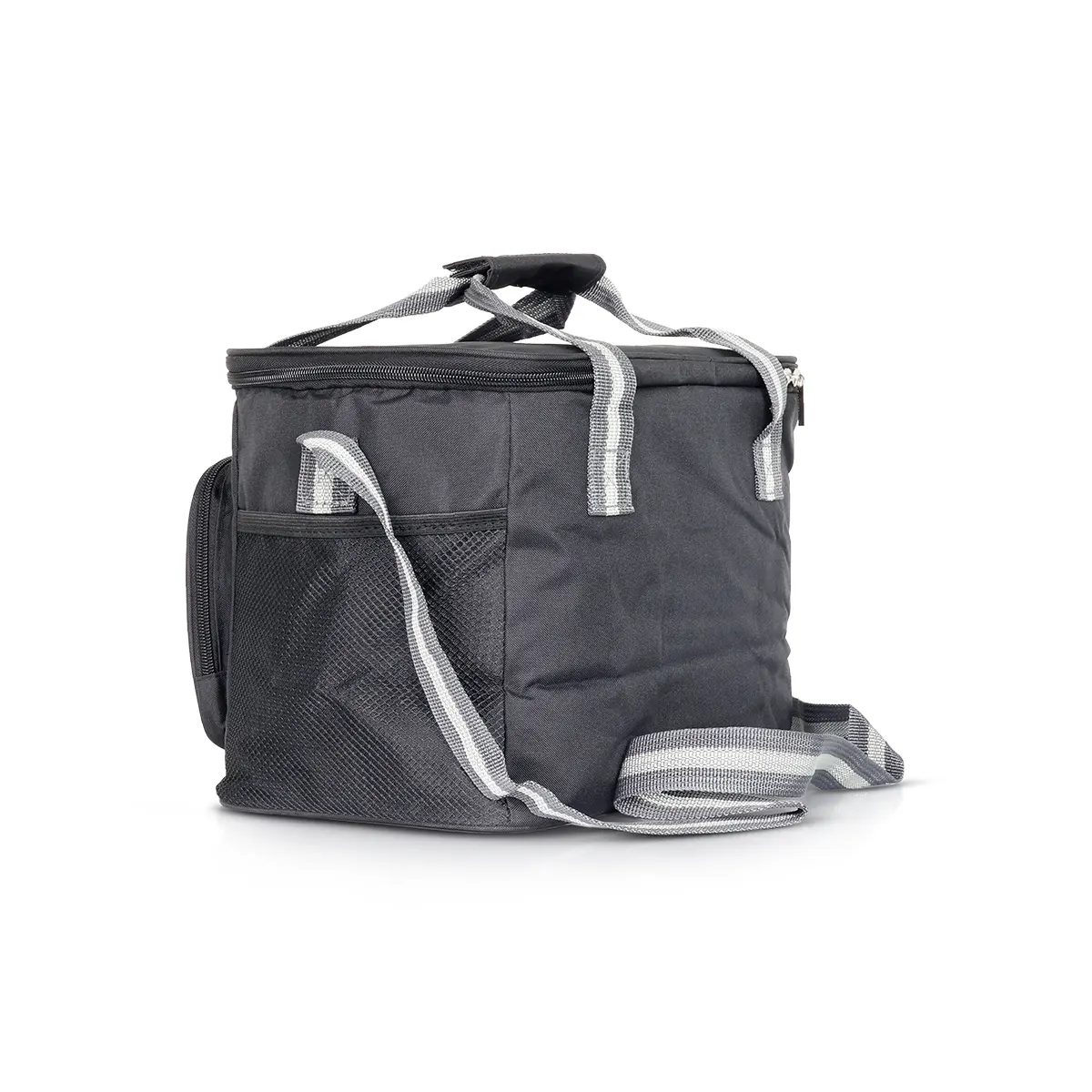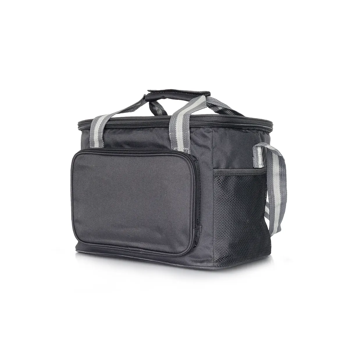 Upgrade your everyday meals with our large black insulated lunch bag, built for durability, function, and modern style. Crafted from premium polyester, this eco-friendly bag features a spacious insulated compartment that keeps your food hot or cold for hours. It comes with a front zipper pocket, side mesh pockets, sturdy top handles, and an adjustable shoulder strap for easy carrying — ideal for office, school, or outdoor trips.