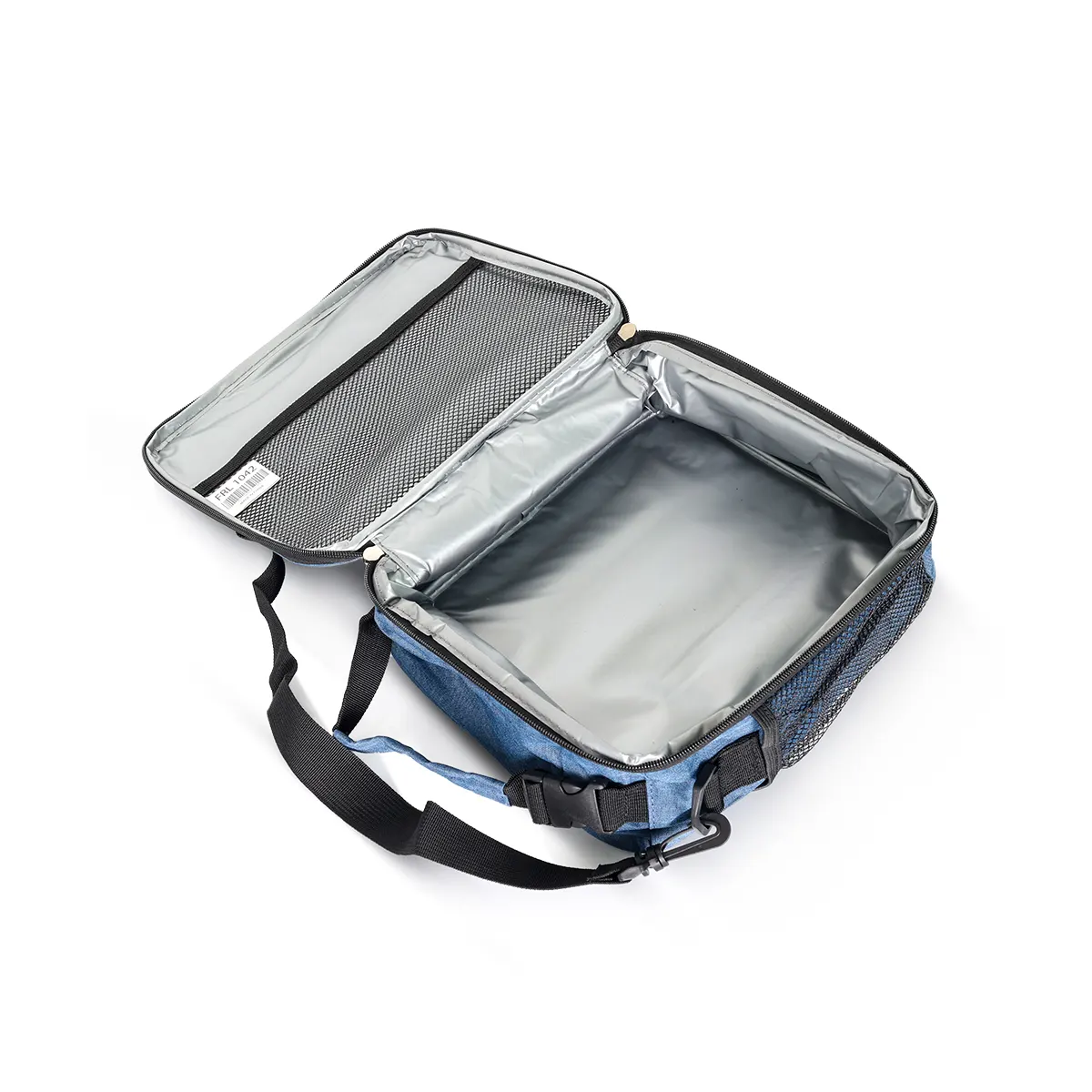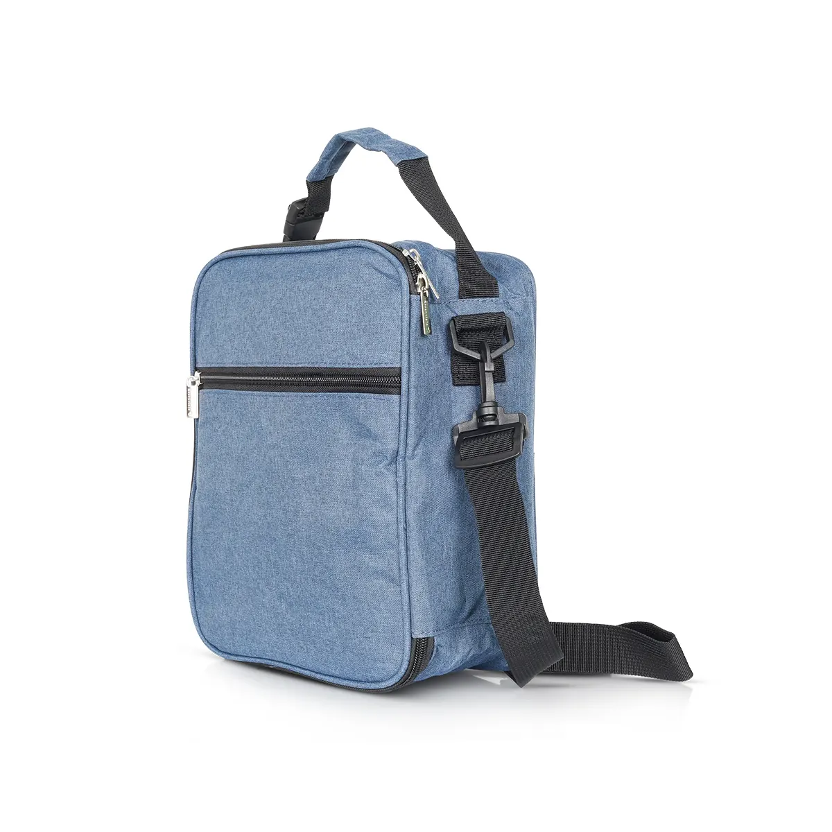 Enjoy fresh, well-packed meals wherever you go with our blue vertical insulated lunch bag. Designed with convenience in mind, this eco-friendly bag features a tall, space-saving design with an insulated compartment to keep your food hot or cold for hours. It includes a front zipper pocket, side mesh pouch, top handle, and an adjustable shoulder strap for easy portability — perfect for office, school, or outdoor use.