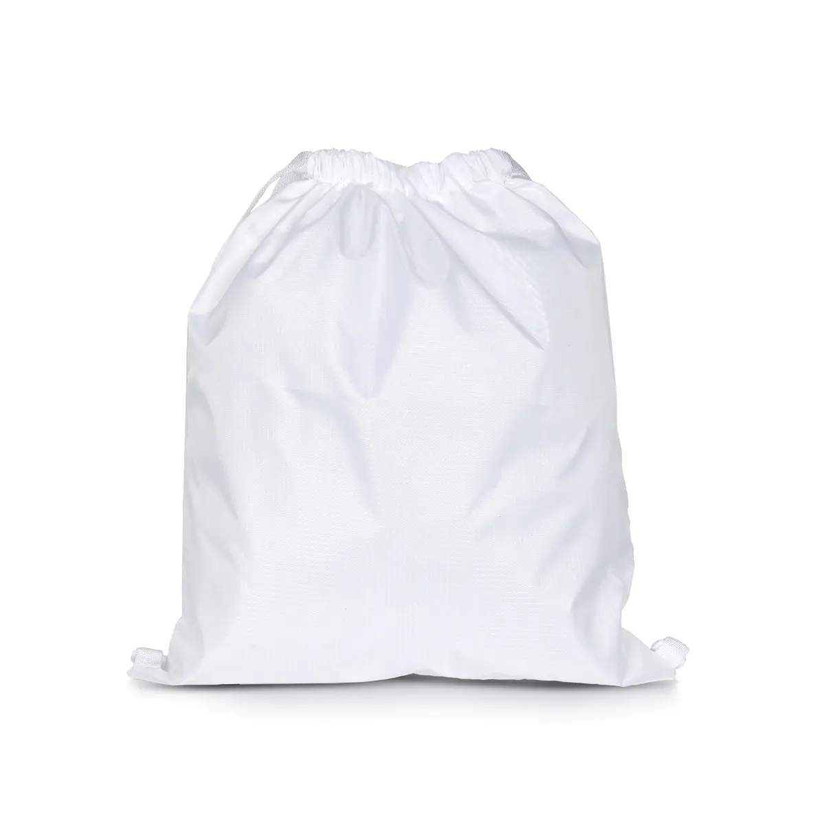 Its adjustable drawstring straps make it easy to wear over the shoulders, while the spacious compartment provides ample room for essentials such as brochures, accessories, or gym gear. The neutral white color ensures high print visibility, making your logo or design stand out clearly.